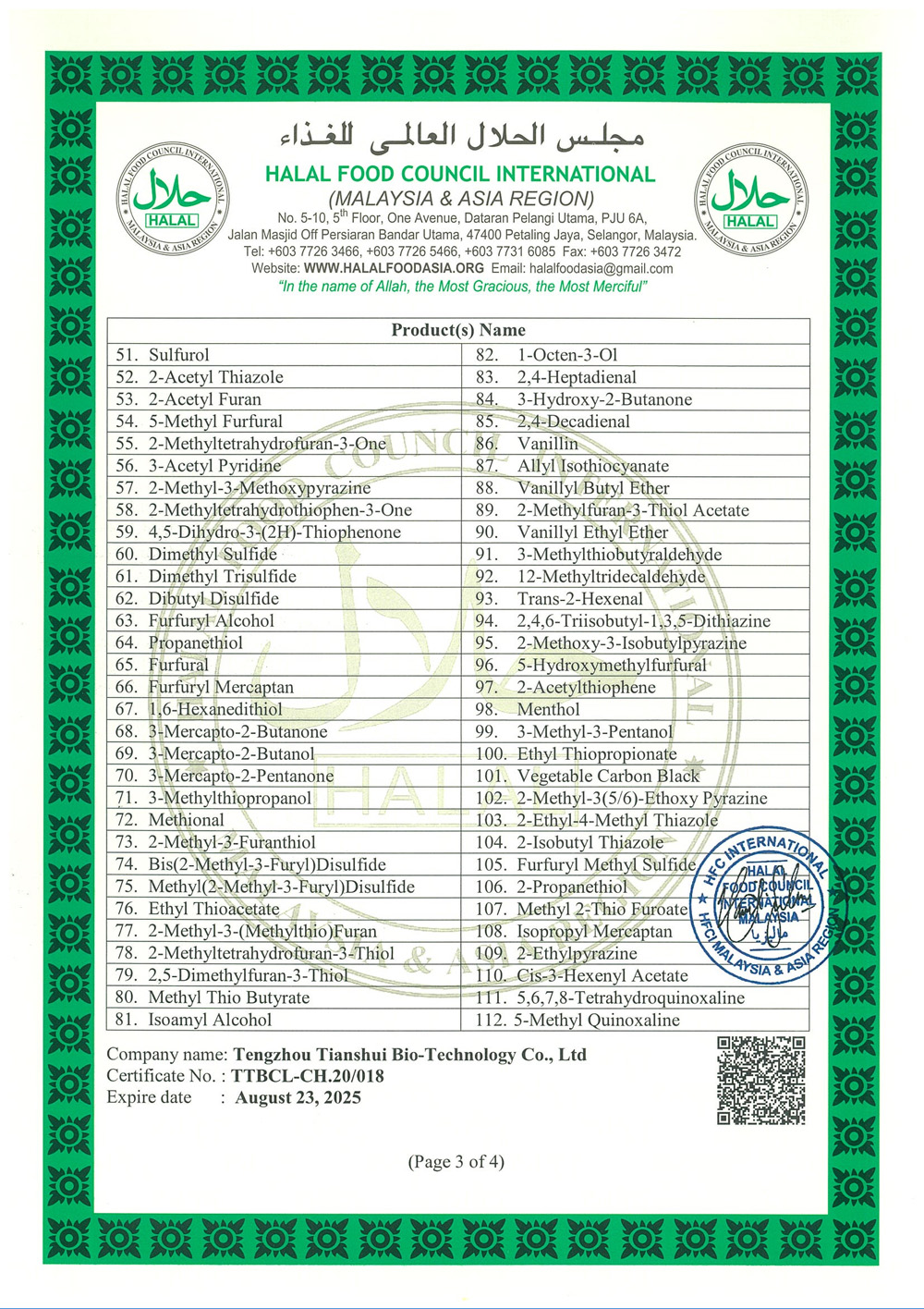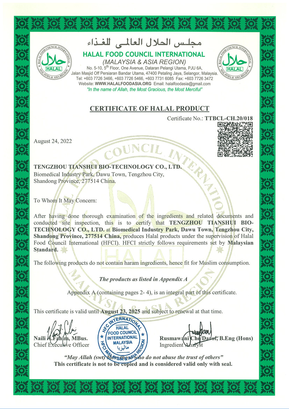 滕州市天水生物科技有限公司成立于2011年9月,是目前國內(nèi)雜環(huán)類合成食品香料、日化香料和醫(yī)藥中間體生產(chǎn)經(jīng)營的綜合性企業(yè)。坐落于山東省滕州市生物醫(yī)藥產(chǎn)業(yè)基地,總投資5000余萬元,占地面積約30000平方米,員工百余人。公司先后被評為高新技術(shù)企業(yè)、專精特新中小企業(yè)、科技型中小企業(yè),建有市級重點(diǎn)實(shí)驗(yàn)室1處,并先后獲得ISO9001質(zhì)量體系認(rèn)證、ISO22000食品安全體系認(rèn)證、kosher認(rèn)證和Halal認(rèn)證。是香精香料及食品配料協(xié)會會員單位及滕州市中小企業(yè)協(xié)會理事單位。